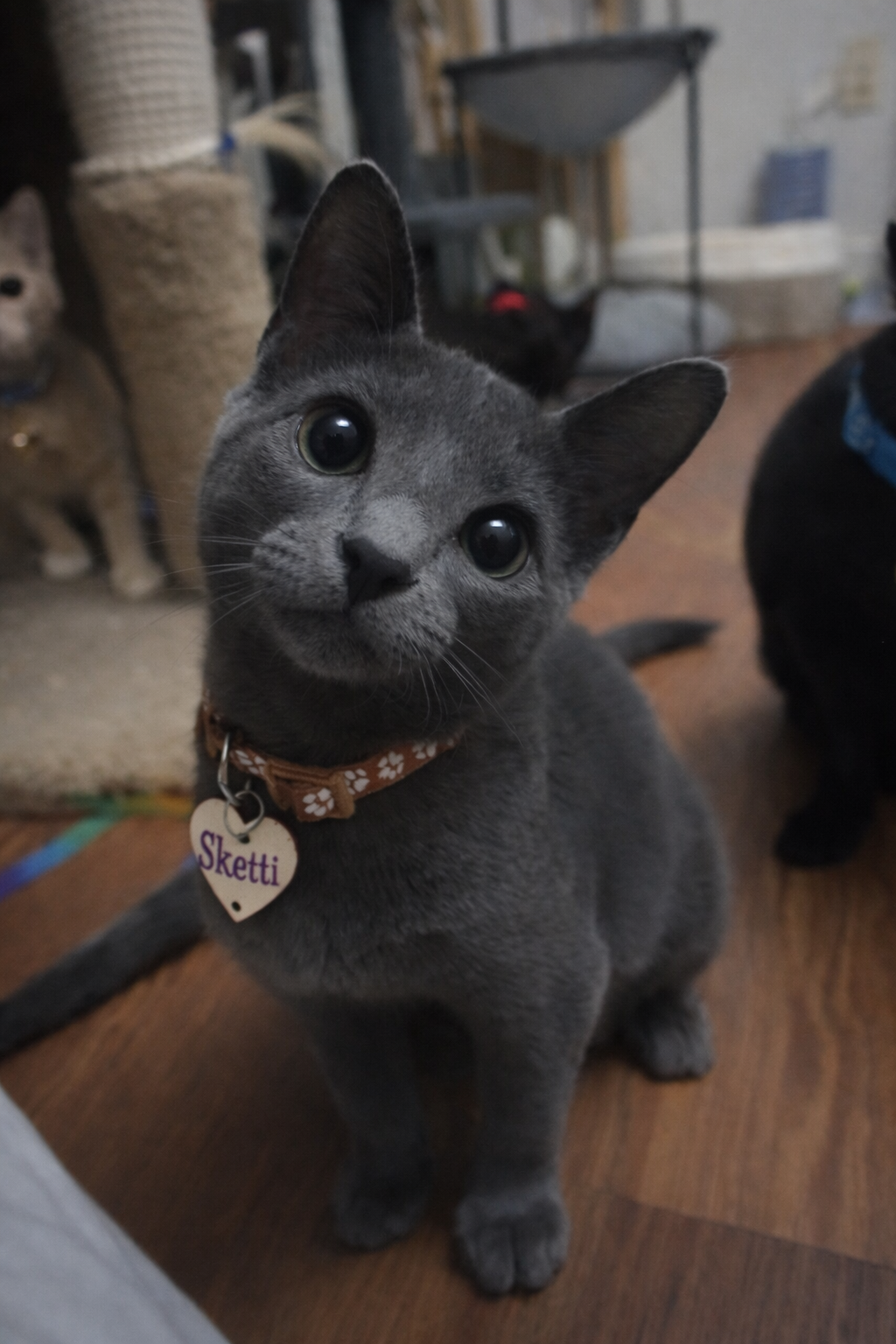 Just like his siblings Fetty and Tortellini, he is the sweetest kitten you will ever meet. Will play until he is tired then will nap in your lap. Loves the cuddle the neck!